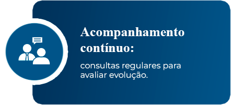 As consultas são pontuais e personalizadas. Caso o Dr. avalie a necessidade de um acompanhamento próximo, será orientado diretamente durante o atendimento.